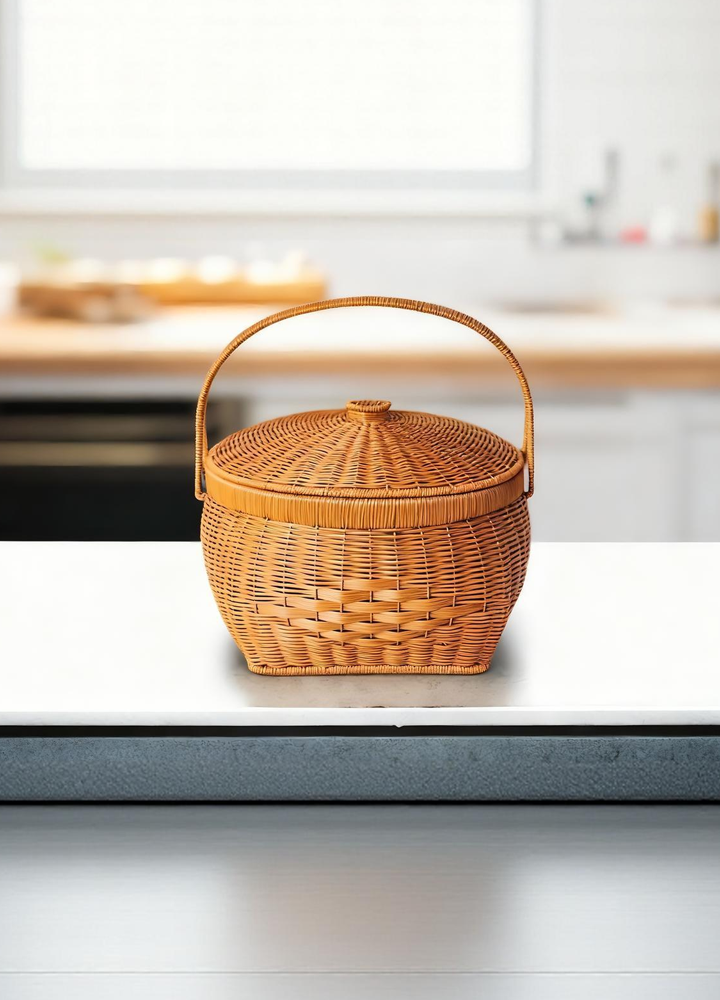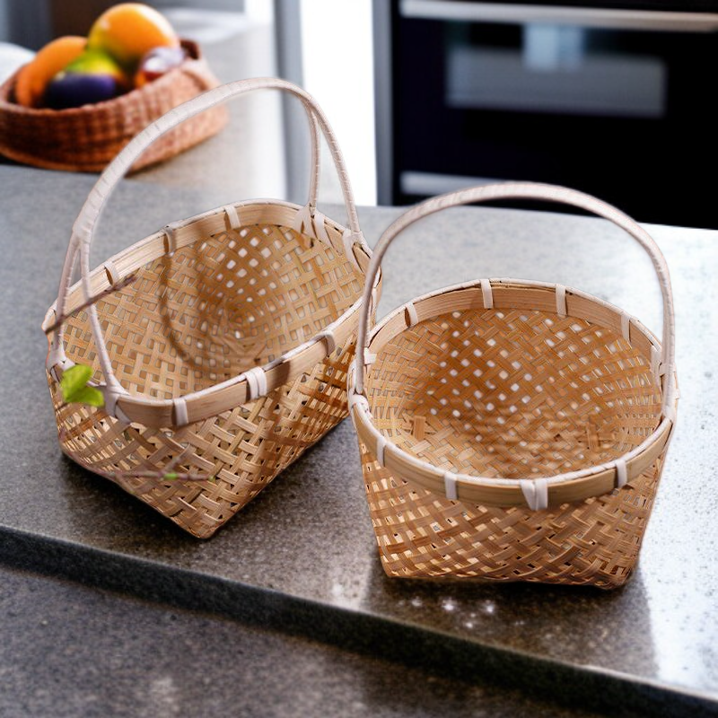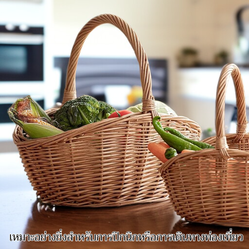 ตะกร้าผลไม้จักสานพร้อมหูหิ้ว