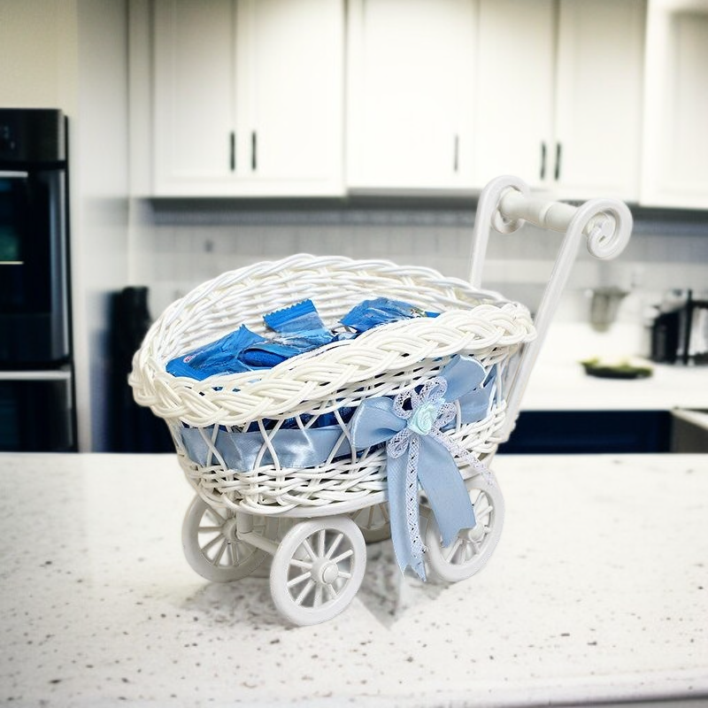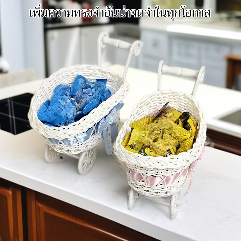 ● ตะกร้าหวายเทียมใส่ขนม ดีไซน์สวยคลาสสิก เหมาะสำหรับจัดขนมในงานเลี้ยงหรือของขวัญ เพิ่มความน่าประทับใจให้กับทุกโอกาส